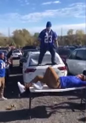 Ah...have you met the Bills Mafia?WTH is that guy trying to do? Looks like he's getting ready to dive onto that guy on the table.
