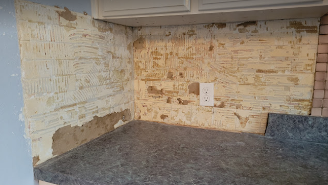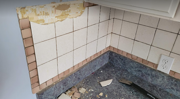 - Demolition- removing the old cabinets and backsplash tile