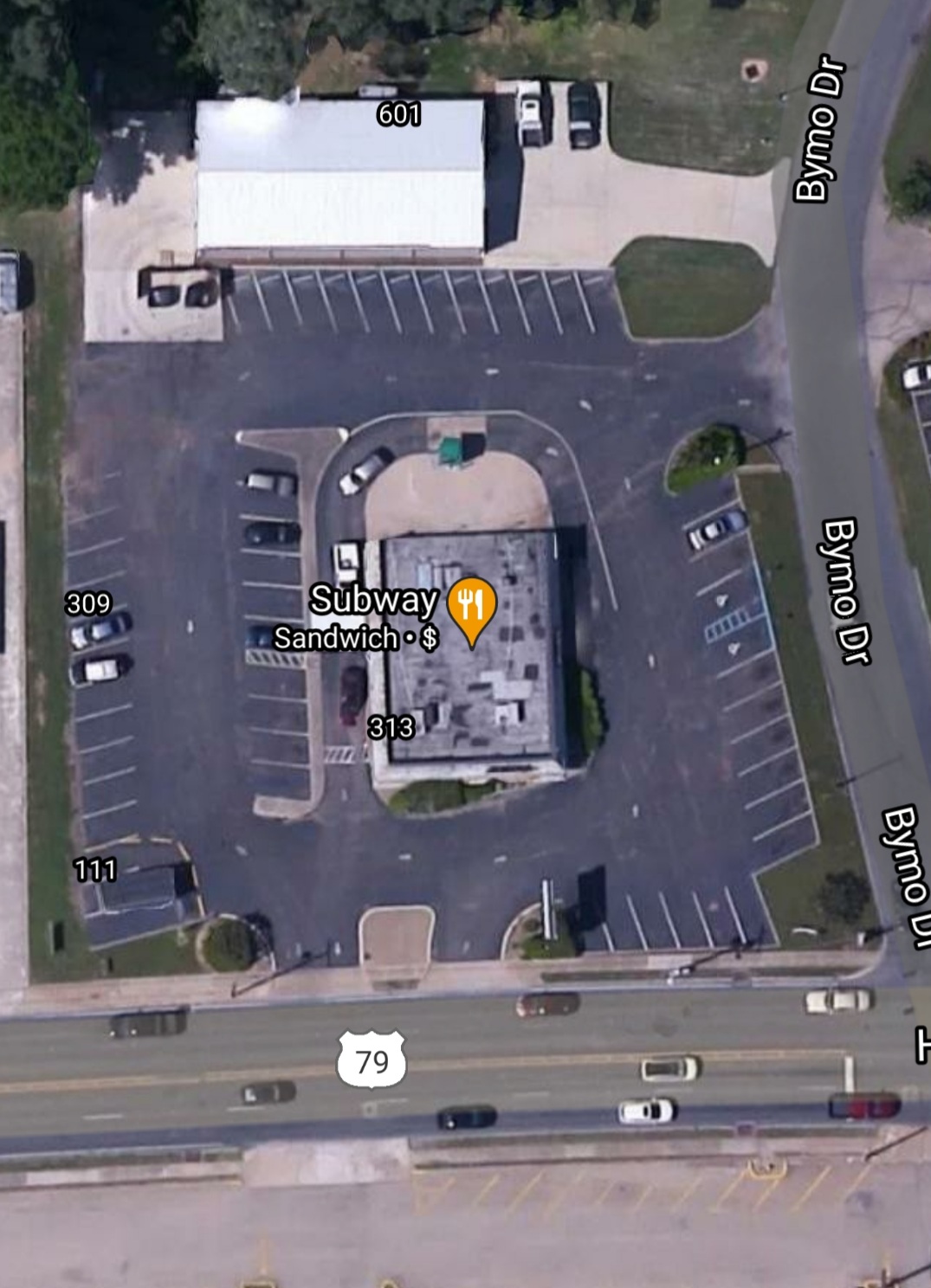 Here is a Subway with 53 parking stalls plus a drive through lane.